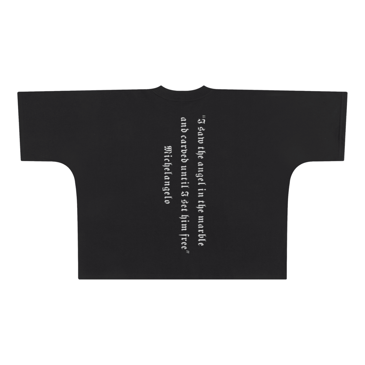 This oversized Box T-shirt inspires your faith and creativity with a bold, minimalist design rooted in spiritual artistry. The front features a striking white cross, a symbol of your unwavering devotion. Turn it around to discover the back, where the profound quote "I saw the angel in the marble and carved until I set him free" by Michelangelo runs vertically, reflecting the transformative power of faith and the divine beauty within. Crafted for the believer who merges spiritual depth with a fit lifestyle, this shirt offers a loose, comfortable fit perfect for workouts or casual wear, blending a timeless message of liberation with a sleek, modern aesthetic.